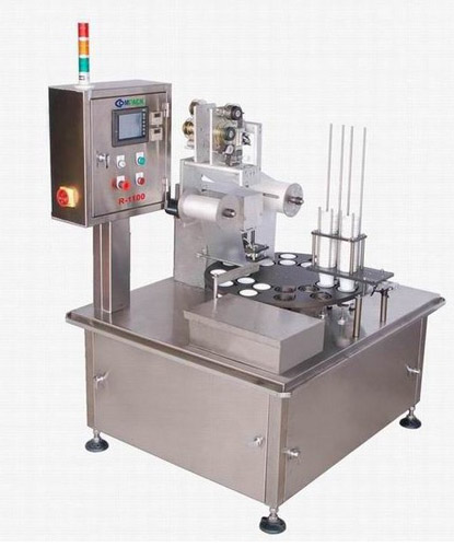 BG系列圓盤機(jī)功能齊全之最小型全自動(dòng)化機(jī)種,佔(zhàn)用空間小。落杯→無杯檢出→充填→電眼校正封膜位置→印字→封口&杯蓋裁切→成品整列排出一貫作業(yè)。傳統(tǒng)式操作面板,簡單易懂。封口模獨(dú)立溫控回授控制。電眼自動(dòng)追蹤校正封口位置,薄膜印刷對(duì)位精確。全機(jī)採用不銹鋼及鋁合金制作,堅(jiān)固平穩(wěn),永不生銹。充填定量精確,儲(chǔ)料桶液位控制自動(dòng)供料。CIP自動(dòng)清洗料桶及充填管路。全部管路符合食品級(jí)衛(wèi)生規(guī)范。無杯檢出自動(dòng)停機(jī),補(bǔ)入自動(dòng)啟動(dòng)。成品自動(dòng)整列輸出。